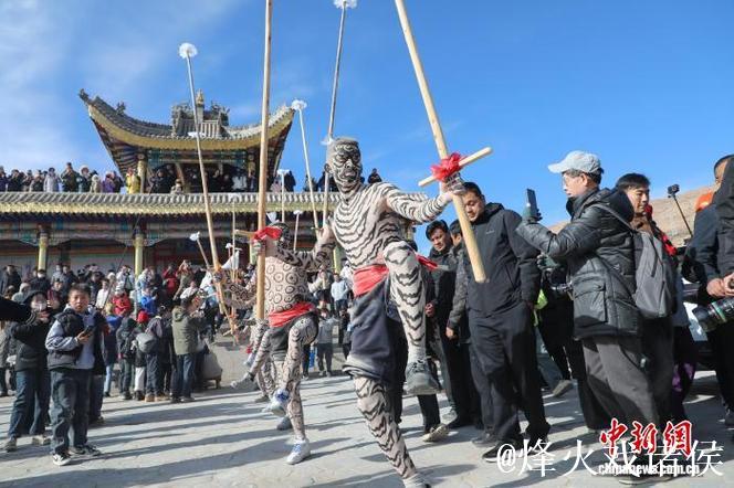 青海古村年味再起 “於菟”跃上古堡的祈福时刻 当凛冽的高原寒风被爆竹声一点点驱散,当古堡下的石板路再次被脚步踏热,青海古村那久违的年味,便在“於菟”腾跃的身影中重新被点燃。这个带着神秘色彩的古老